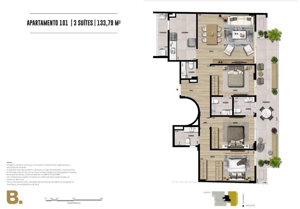 • 3 Suítes: 134,89m² com 1 vaga de garagem (2º andar)