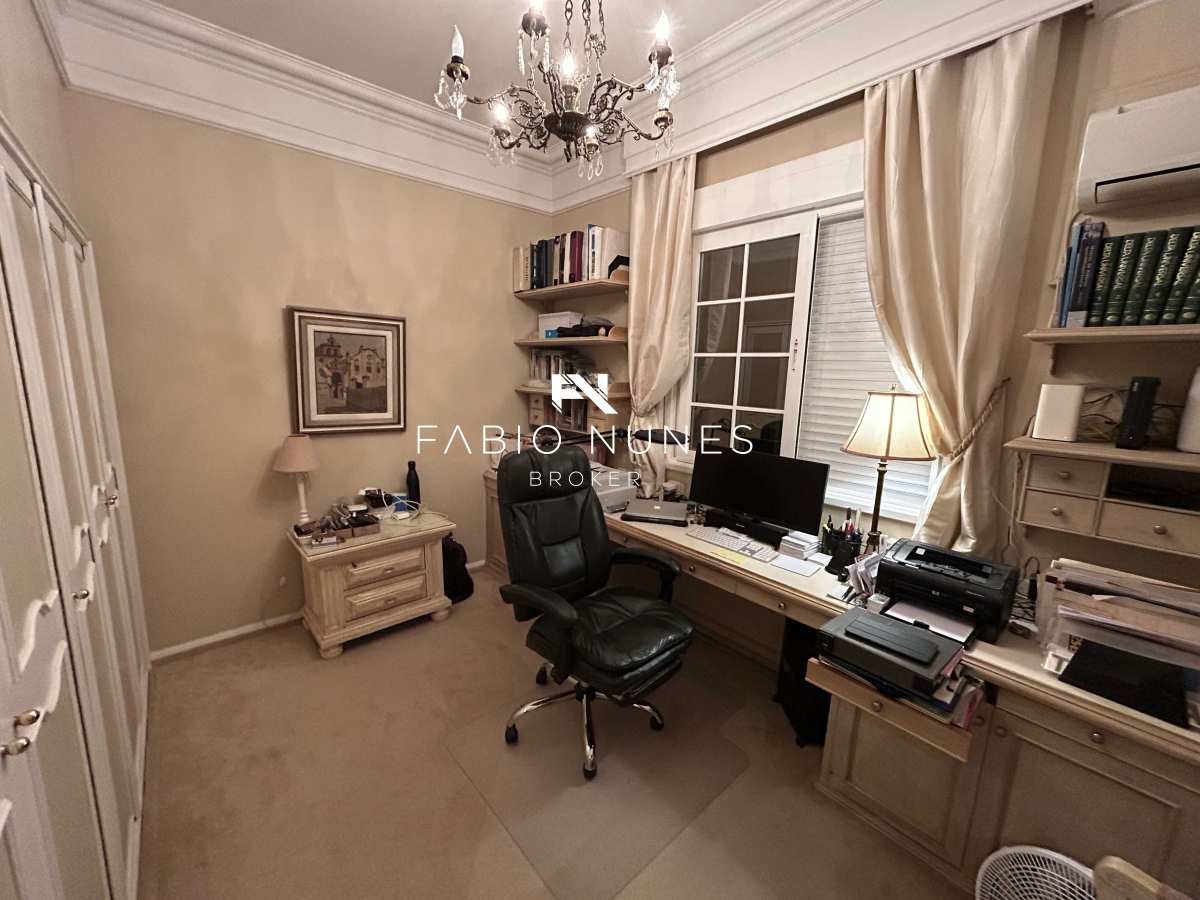 Originalmente com 4 quartos, a planta foi inteligentemente remodelada: a suíte master ganhou um escritório anexo, o terceiro quarto virou sala de TV e todos os ambientes foram otimizados com armários planejados. A ampla sala frontal possui três ambientes integrados, incluindo bar, além de lavabo, banheiro social e sala de jantar com acesso direto à cozinha.