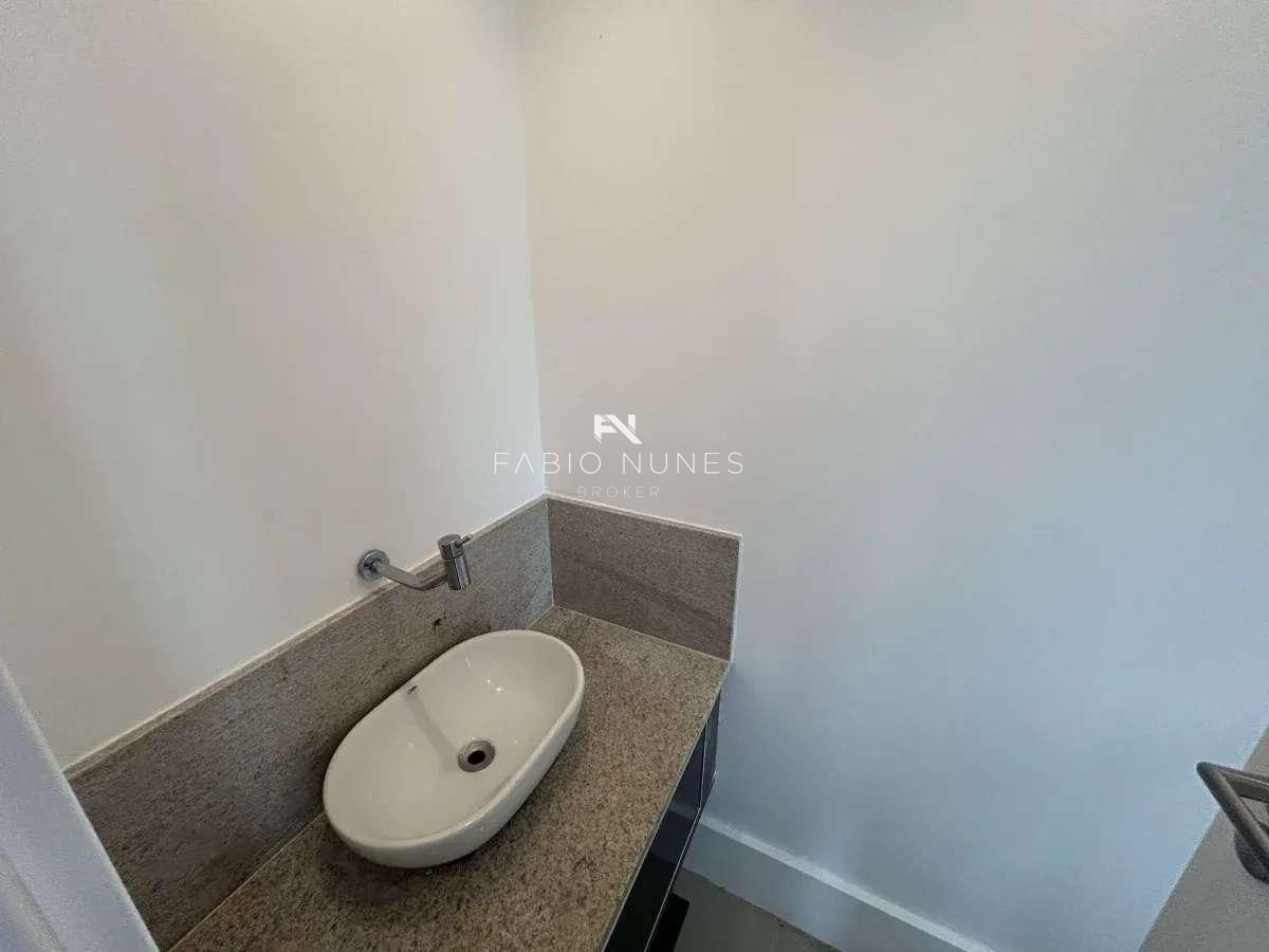 No primeiro piso, dispõe de hall com lavabo, ambiente versátil para escritório ou quarto de apoio, ampla cozinha integrada à área de serviço e banheiro de serviço. A área externa conta com piscina, churrasqueira, varanda gourmet e 2 vagas de garagem.