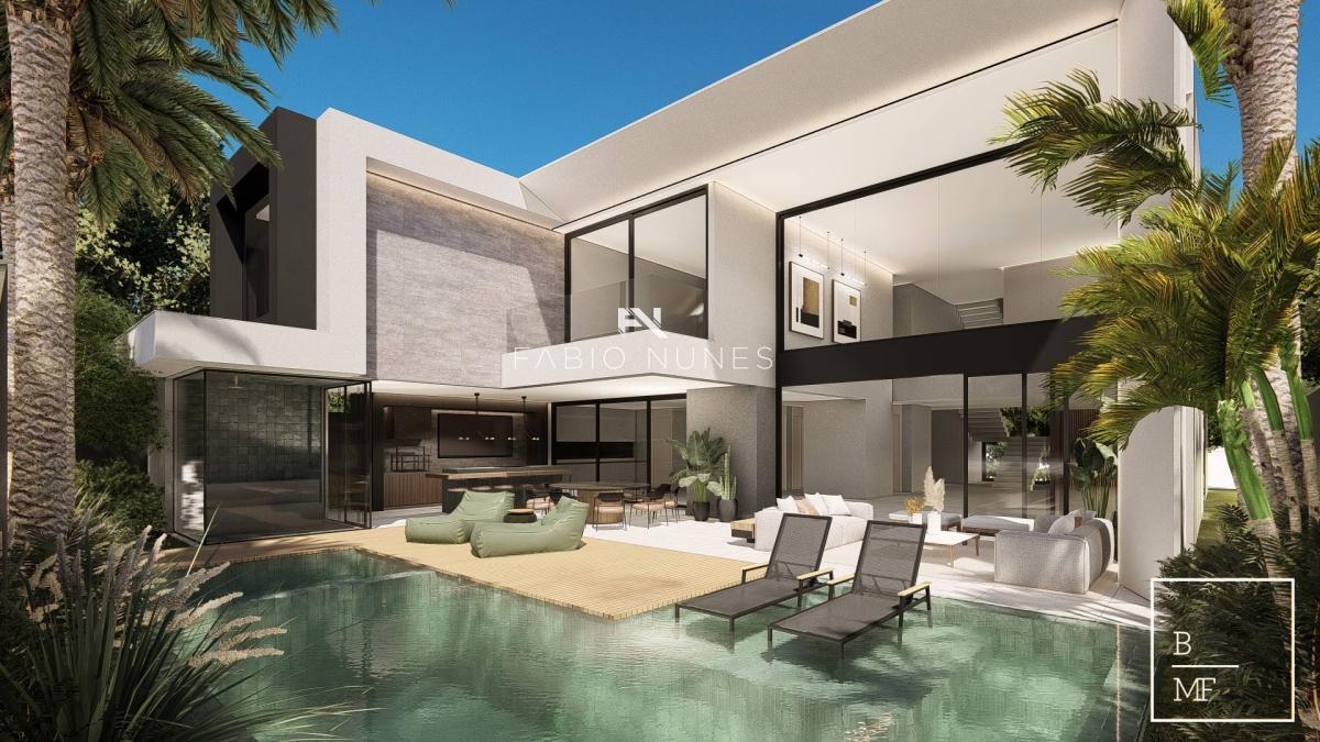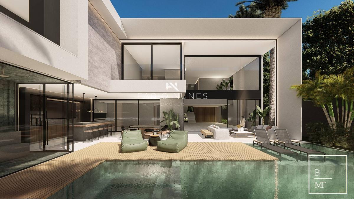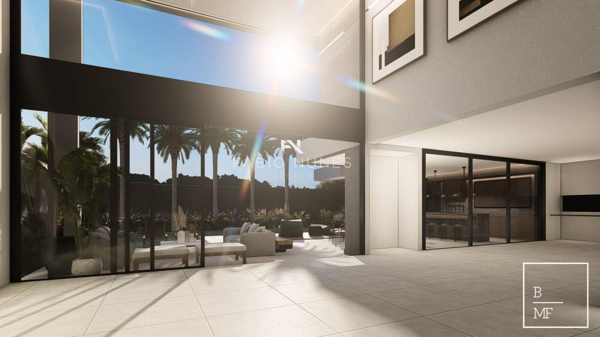 Com 860 m² de área construída e 680 m² de terreno, esta residência de alto padrão oferece acabamentos de luxo, como granitos, mármores nobres e porcelanato. Escadas e varandas com guarda-corpo de vidro conferem um toque moderno e elegante a cada ambiente.