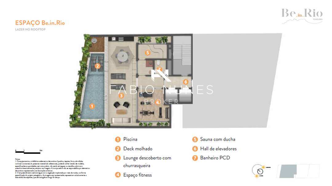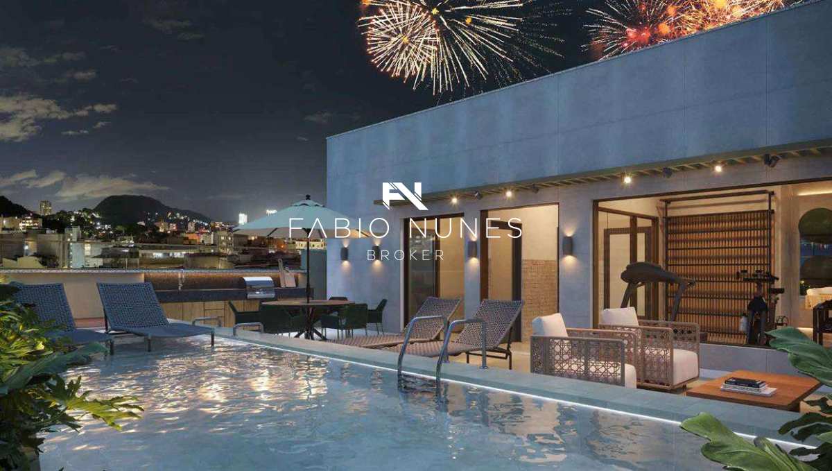 O lazer é digno de um rooftop carioca: piscina aquecida, sauna, espaço fitness e lounge descoberto com churrasqueira, criando uma atmosfera de hotel boutique no coração de Copacabana.