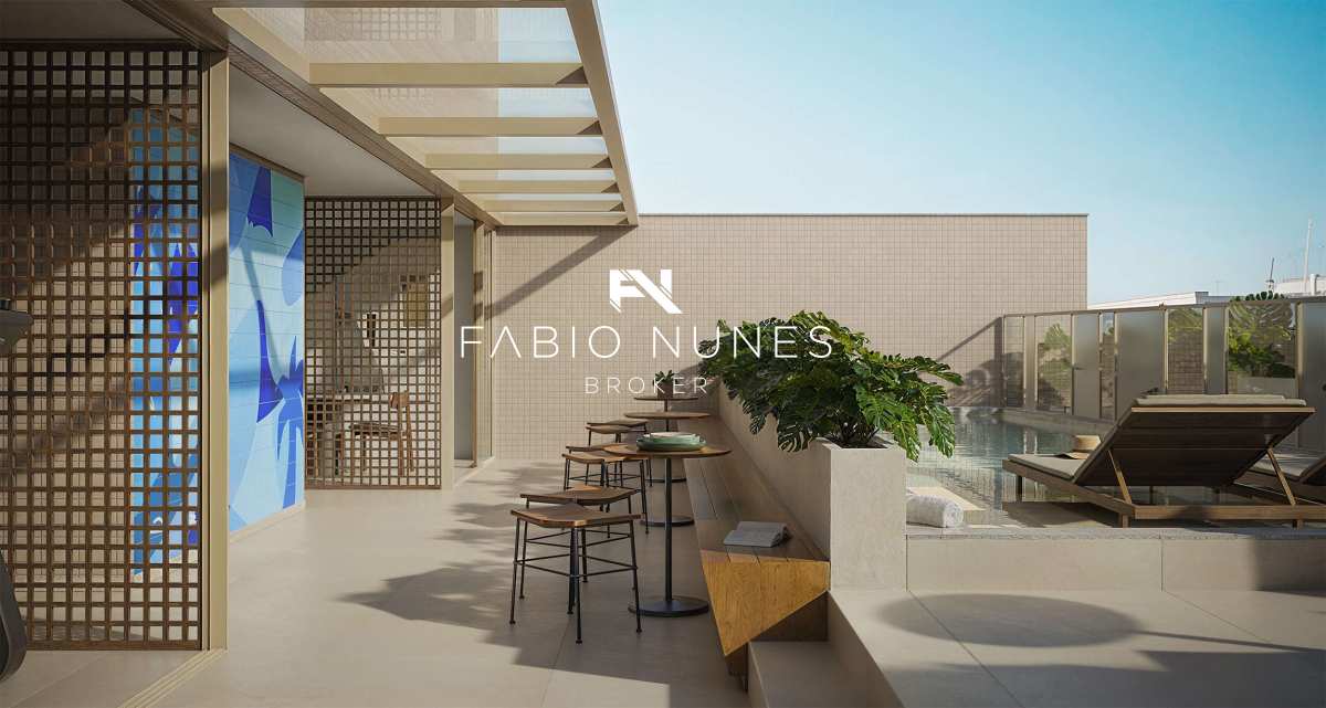 São 68 unidades divididas entre Studios (33 a 35 m²), Double Studios (63 a 69 m²), Gardens e Coberturas, todas planejadas para máxima funcionalidade. O prédio oferece infraestrutura completa: lobby de recepção, lavanderia, pet care, lockers, bicicletário, sky pool com vista panorâmica, lounge gourmet, running room e serviços sob demanda.