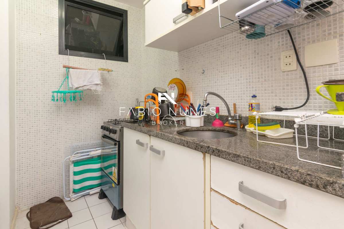 O imóvel é composto por sala aconchegante com sofá-cama, mesa e TV, sacada privativa, cozinha americana completa (com fogão, geladeira, micro-ondas e utensílios), suíte com cama de casal, banheiro com bancada em granito e box blindex, além de armários planejados em todos os cômodos. Para maior comodidade, conta com ar-condicionado na sala e no quarto, internet e TV a cabo.
