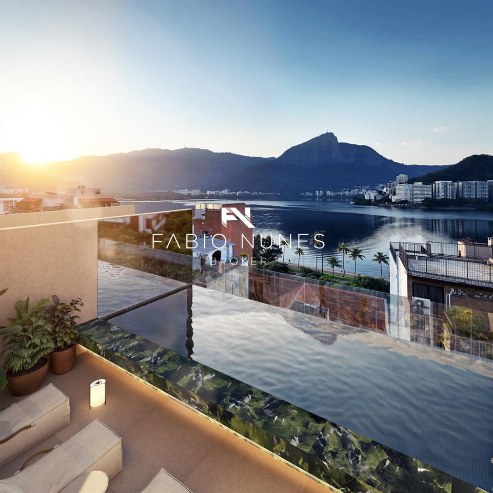 Assinado pela renomada Cité Arquitetura, o projeto combina design contemporâneo, fachada em granito branco apicuado e acabamentos de altíssimo padrão. O rooftop é um verdadeiro cartão-postal, com piscina de borda infinita, sauna, lounge e uma vista deslumbrante para o Cristo Redentor e a Lagoa.