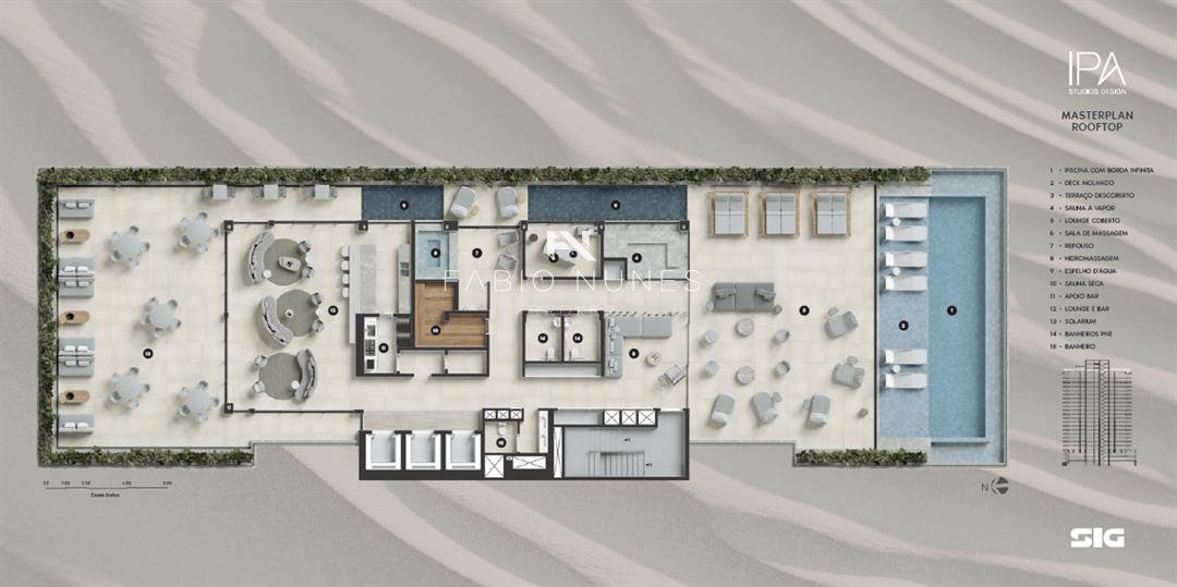 O Ipa Studios Design Ipanema oferece uma infraestrutura de lazer e conveniência completa, pensada para atender às necessidades dos moradores de forma sofisticada e eficiente. Entre os destaques estão:
